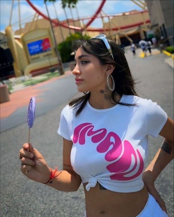 Baby tee de algodón con estampa en vinilo textil rosa.
