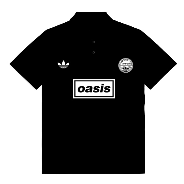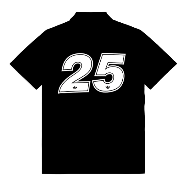 Chomba de piqué negra con estampa en vinilo textil blanco, en frente y espalda.